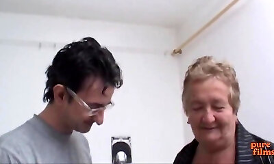 Stupid old German granny entices virgin Young Guy to fuck