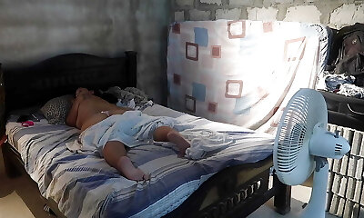 my brother-in-law comes into my bedroom and gets into bed with me. he takes off my g-string and massages my pussy