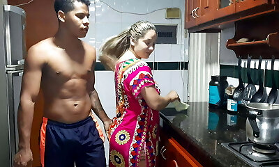 Huge-boobed mom caught her white stepson is stagging on her and offered to help