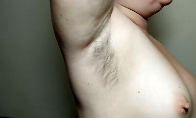 Ellie shows her hairy underarms and plays with them