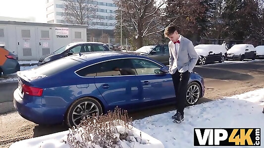 Slim Russian blonde fingered by clips dad force bystander on her drivers seat