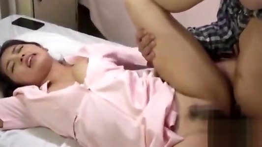 Gamine dame Mai Shimizu wakes her Bf up to be nailed at night