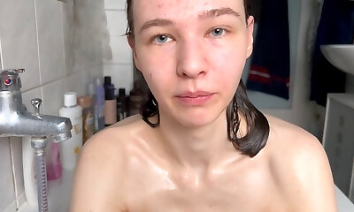 Step sister caught me on her in the douche