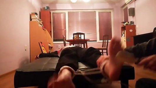 fille torride chatouillé en baskets et chaussettes noires