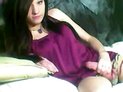 la bite de t-girl devient plus grosse alors que la jolie fille solo se branle sur le canapé