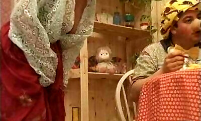 Pale blonde girl gets her cooch fucked by a dude in a costume