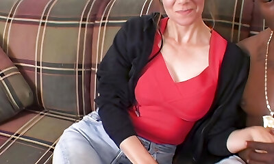 Trendy blonde cougar tastes young black guy's xxl rod in interracial vid