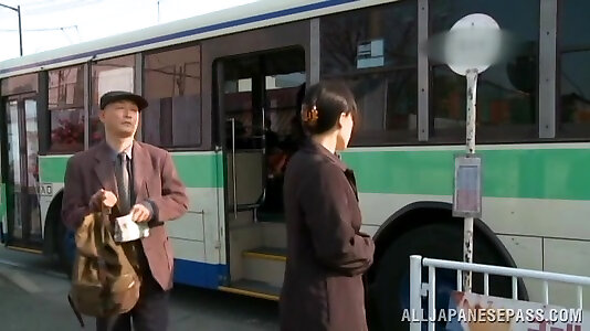 азиатская милашка обожает вдыхать аромат кудрявого чувака, которого она встретила в автобусе